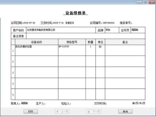 合同类型:改装、维修、退货。直接生成“维修单”,然后交由生产部门处理。