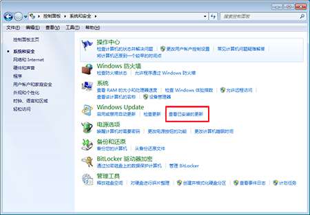 3、进入以后找到“windows update”,点击下面的“查看以安装的更新”。