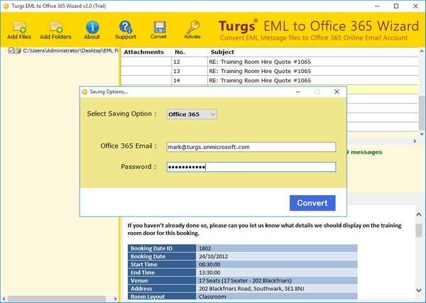 Turgs EML to Office 365 Wizard(EML到Office 365转换器)是一款非常不错的EML到Office 365转换工具,这款软件可以将 EML 文件导入 Office 365 的批量转换选项。
