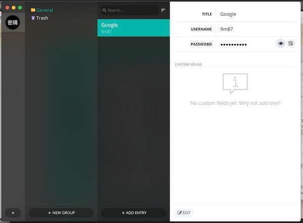 点击中间下方的 ADD ENTRY 新增密码。