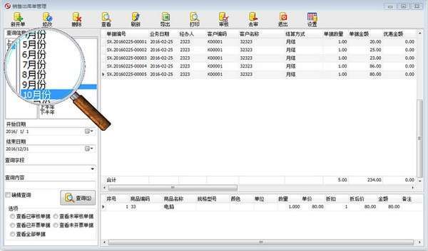 2)可以更加方便地筛选历史单据信息,如:按年、月、日及客户、单号等信息查询