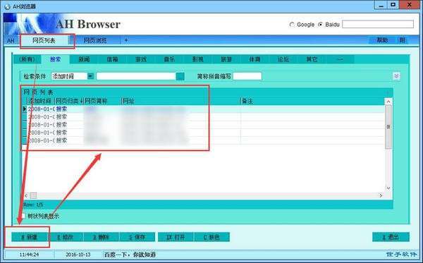 点击“网页列表”==点击“新建”==添加网页归类==简称==网址等
