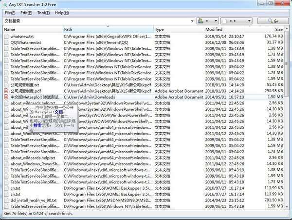 AnyTXT Searcher内置了强大的文档解析引擎,可以在不安装任何其他软件的情况下提取常用文档的文本,并结合内置的高速索引系统来存储文本的元数据。你可以使用Anytxt快速查找计算机上存在的任何文本。它适用于Windows系统所有操作系统。