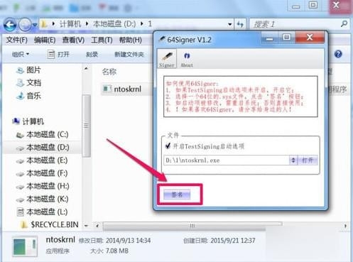 本文用一个ntokrnl.exe文件为示例,介绍一下签名过程,这个文件并不是新开发的驱动程序文件,而是新装系统后,电脑开机时提示此文件没有数字签名,就被我拿来了。
