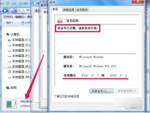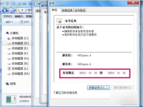 再打开ntokrnl文件的属性->数字签名->常规,可以看到有效期改变了,文件也可以正常使用了。