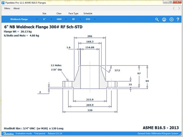可以直观,轻松地检索最新的管道和设计数据。尺寸和重量单位可以设置为英制或公制,它提供了一个广泛的管,管道,法兰,阀门和其他设计数据的数据库访问