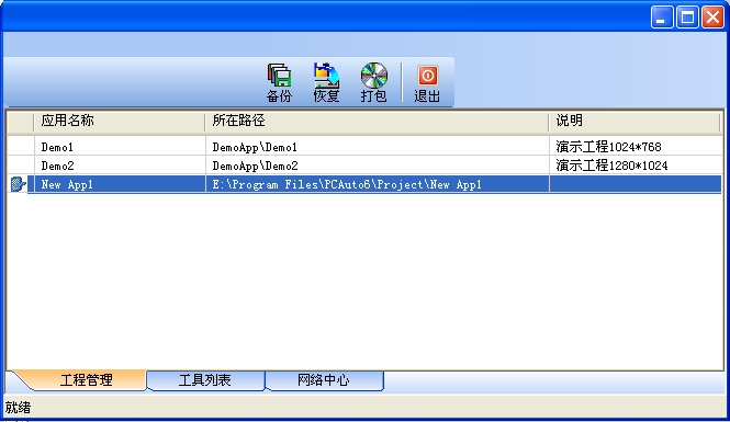 工程管理器用于工程管理包括用于创建、删除、备份、恢复、选择工程等。