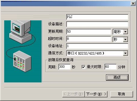 对于串口通信方式类设备,单击设备配置向导第一步对话框中的“下一步”按钮,将弹出第二步对话框