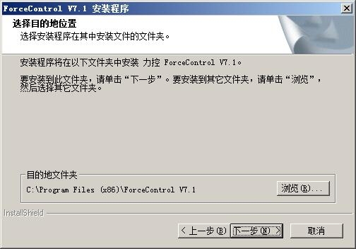 7、选择软件安装目录,默认为“C:Program Files (x86)ForceControl V7.1”