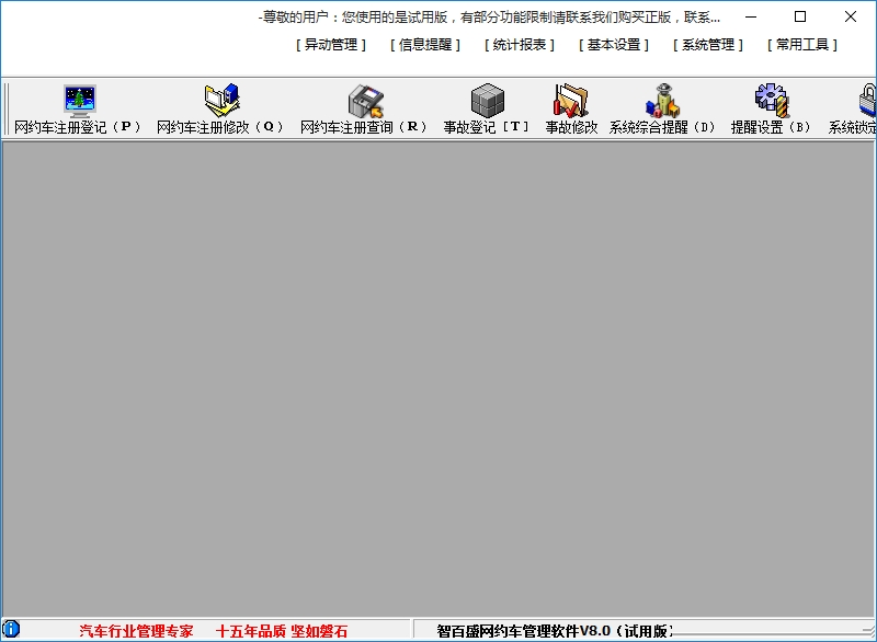 智百盛网约车管理软件试用版是一款十分专业的网约车管理工具,智百盛网约车管理软件试用版界面简洁,功能全面,为广大用户提供了注册管理、异动管理、财务管理、保险理赔等功能,不仅如此,智百盛网约车管理软件官方版还支持统计报表、信息提醒、基本设置等功能。