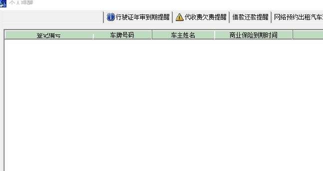 2、提示软件的车辆提醒界面,到期的车辆可以在启动软件的时候自动提醒