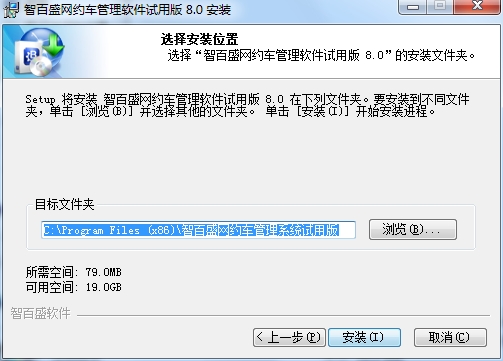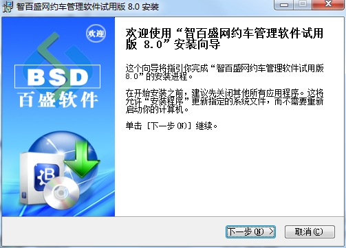 1、打开智百盛网约车管理软件V8_0(试用版).exe直接启动,点击下一步安装
