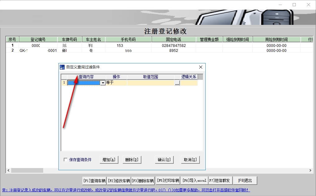 7、自定义查询条件,在软件增加新的查询条件,在软件立即查看车辆