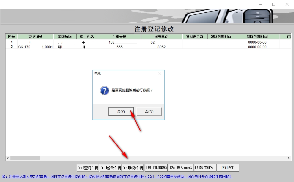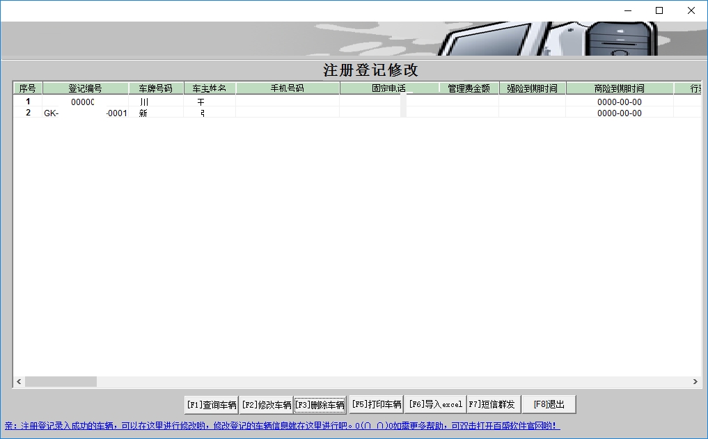 8、修改功能,查询到车辆就可以在软件修改,可以对车主名字修改