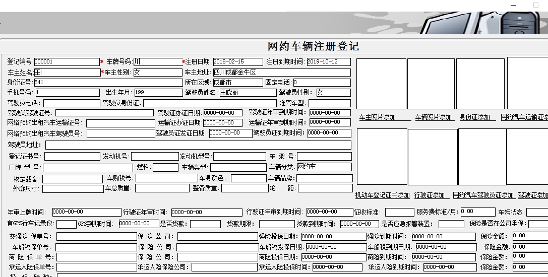 6、注册登记修改功能,在软件界面对当前的车辆注册,也可以对车辆信息查看