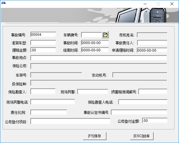 15、车辆事故登记界面,将车辆出现事故的情况输入到软件,方便在后期查看统计事故信息