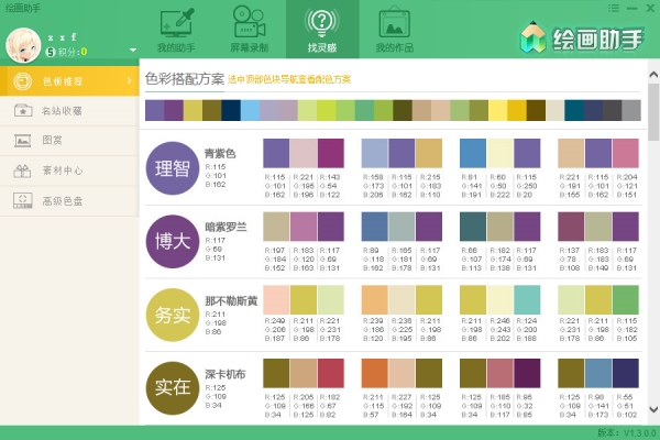 绘画助手内置了多样化的色彩搭配方案,不仅方便参考使用,也有助于激发画师们的创作灵感。此外软件还内置了“收藏夹”,画师可以将自己喜欢的站点保存于此,方便在寻找灵感时直接访问