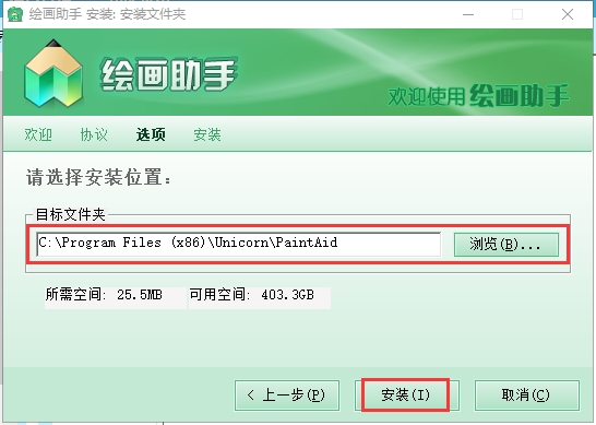 3.选择合适的安装位置后点击安装