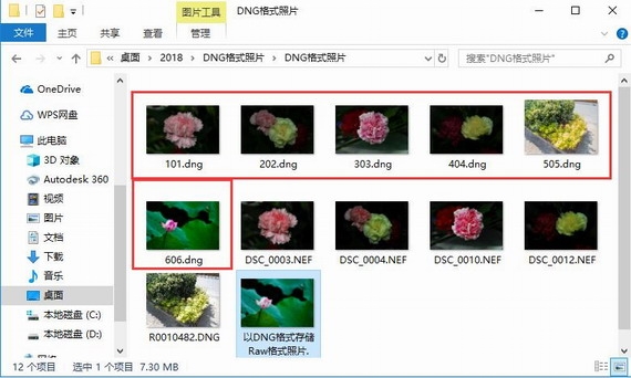 6、转换完成后,在设置好的输出目录中就能看到转换后的DNG格式图片文件了。