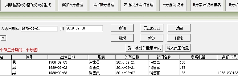 8、员工信息查看功能,在软件界面输入查询条件,基础分是指软件启用时,给每个员工分配的一个分值!