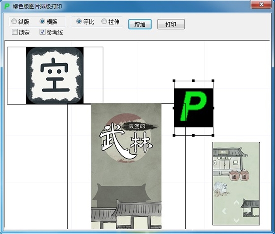 4、支持纵版或横版、支持图片可以进行任意位置的排版、支持等比例缩放以及拉伸填充模式。