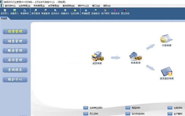 易达手机销售管理最新版是一款手机行业销售管理软件。易达手机销售管理最新版包含了进货单据管理、付款单据管理、进货退货单据管理、销售单据管理、收款单据管理、销售退货单据管理、财务管理、库存管理、查询报表以及维护中心等主要功能。易达手机销售管理可以随时备份系统中的数据。
