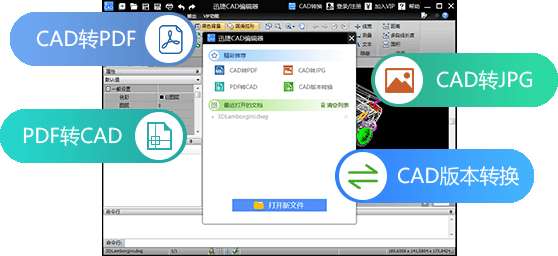软件支持多种格式转换,包括CAD转PDF,CAD转JPG,PDF转CAD,CAD版本转换。