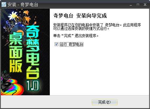 8.点击完成,奇梦电台软件安装成功