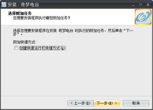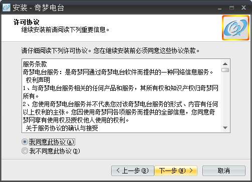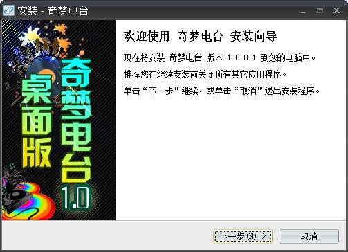 3.双击打开,进入奇梦电台软件界面。点击下一步