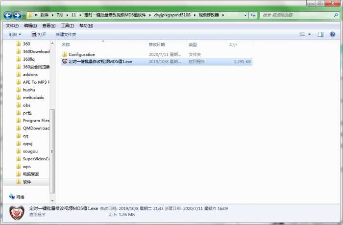 2.解压定时一键批量修改视频MD5软件,运行“EXE.文件”