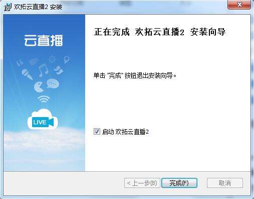 3、欢拓云直播安装完成,点击完成,退出安装向导