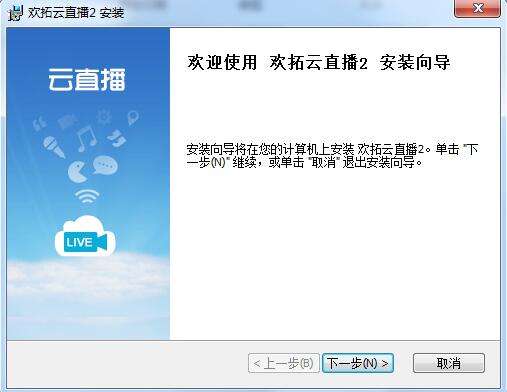 1、在pc下载网,下载欢拓云直播电脑版软件包,解压,运行“exe.文件”双击打开,进入安装向导,单击下一步。