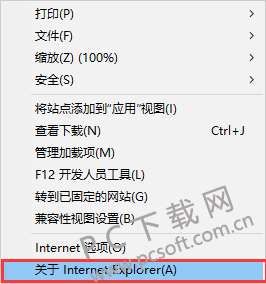 2、在下拉菜单中,单击选择“关于 Internet Explorer”选项。