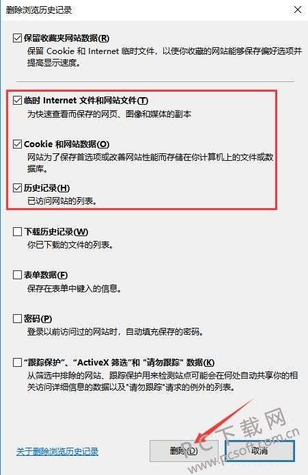 2、按照下图所示,选中这几项,再点击下方的“删除”按钮。