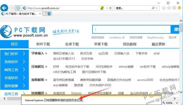 3、当缓存和历史记录删除完成后,会在浏览器下方出现完成提示。