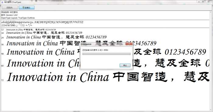 3、华文隶书正在安装,直到安装完成即可。