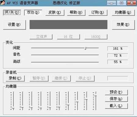 2、点击Vcs3.exe打开,如图所示,可以调节均衡器,各种效果,间距,音色;