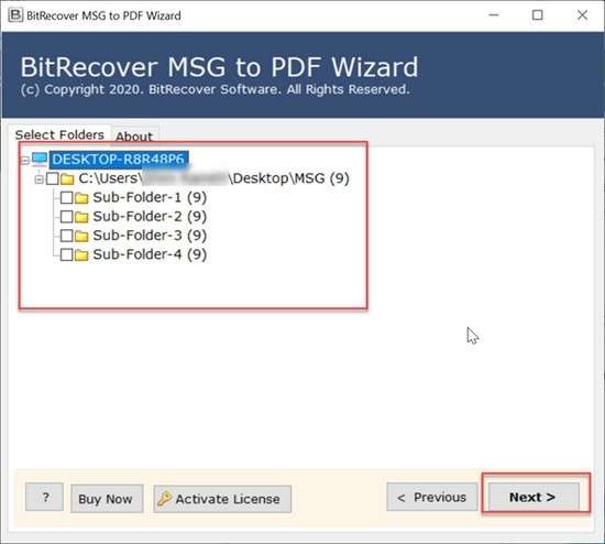 选择文件夹:此选项使您可以选择包含多个 .msg 文件的完整文件夹。它允许您一次将多个 MSG 文件转换为 PDF。