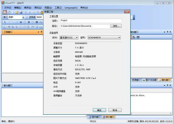 VisualTFT V3.0 是广州大彩光电科技有限公司(www.gz-dc.com)自主创新开发的一款功能强大的串口屏开发调试软件。用户新建工程后,导入设计好的美工图片,然后对每个画面中的按钮和其它控件进行配置,模拟仿真正确后,最后将整个工程下载到串口屏中。设备与PC连接成功后,还可以进行同步和调试显示。