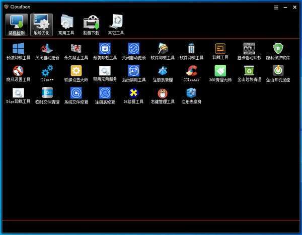 Cloud Box是一款电脑实用软件集合工具箱,作者把自己常用的软件做了收集和整理,重装系统和装虚拟机能节省很多时间,相信有不少朋友会用到!