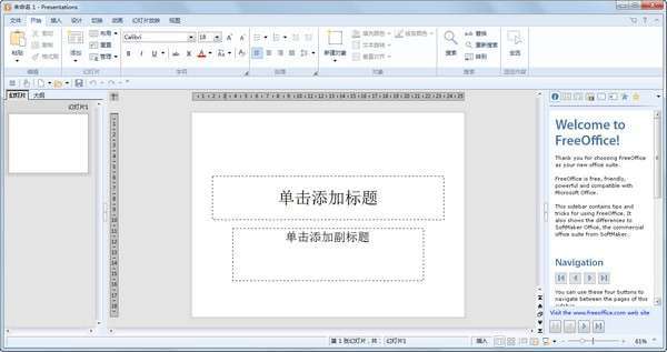 FreeOffice Presentations可以无缝打开和保存所有的Microsoft PowerPoint PPTX文件。此外,您还可以直接从此应用程序内创建PDF文件。