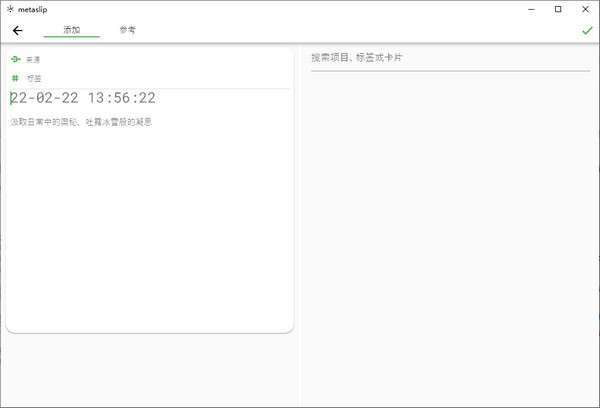 metaslip(元思笔记)是一款非常方便的笔记软件,可以创建多种格式类型,随时随地都可以更加方便的记录,功能强大,界面简洁,操作简单,需要的朋友快来下载吧。
