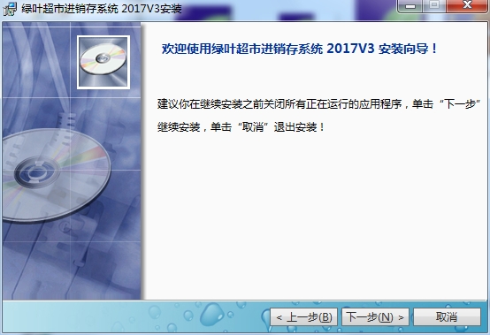 1、在PC下载网下载绿叶超市进销存管理系统官方版压缩包,然后进行解压,解压后,双击exe程序,进入安装界面,然后点击下一步