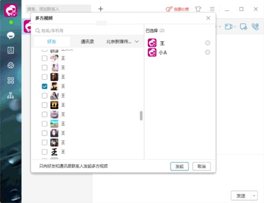 通话能力升级,支持基于VoWiFi的通话能力,包括二人音视频和多方语音通话。二人音视频可以实现视频和语音的无缝切换,多方通话可支持6人同时通话,并有会场功能,包括增加、剔除联系人及禁言。