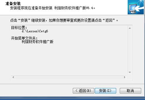 1、下载双击“利信财务软件推广版V6.4安装程序.exe”进入安装,根据安装向导指示完成安装