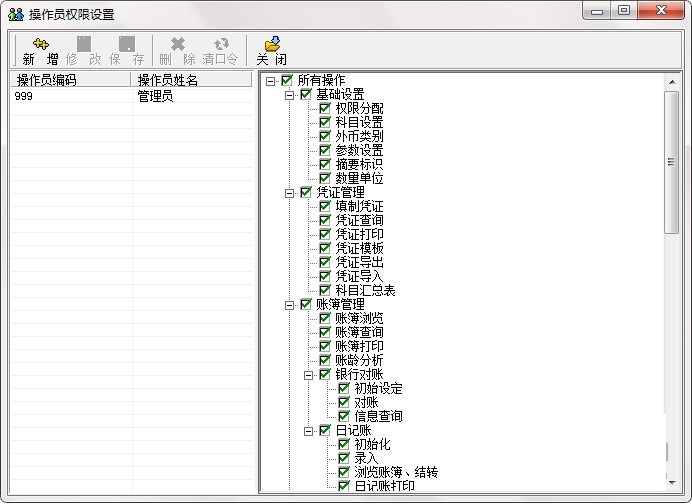 4、设置操作员权限设置