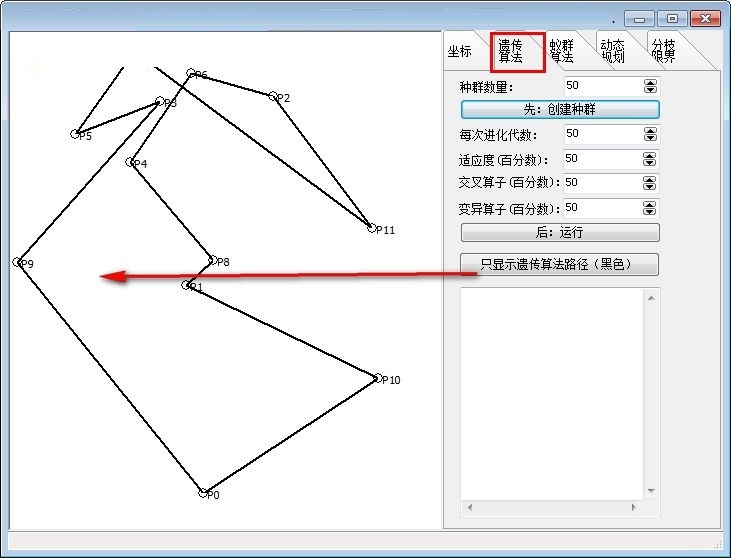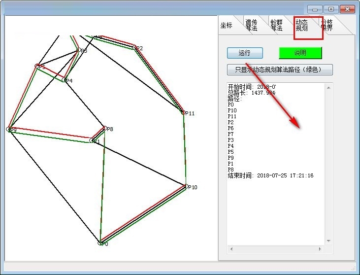 11、动态规划的界面,点击运行,就能得到相关的算法路径;
