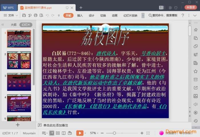 荔枝图序免费课件从介绍作者开始,然后又将生字词进行学习,然后才是解读课文。ppt页面不多,但是内容还是比较丰富的,无论是作为老师参考还是学生预习都是非常不错的。欢迎来体验!