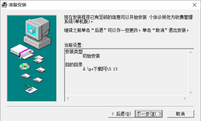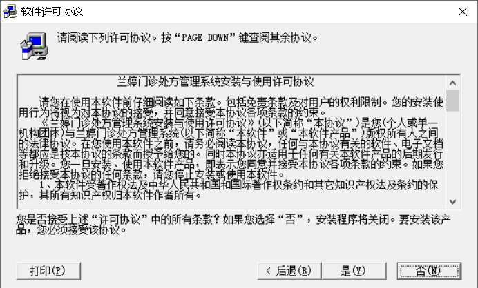 1、在PC下载网下载兰婷门诊处方收费管理系统单机版压缩包,然后进行解压,解压之后得到exe程序,双击该程序,等待一会