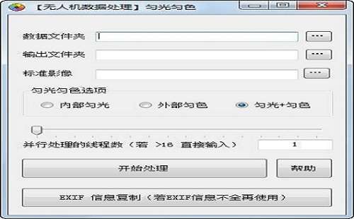 匀光匀色是一款小巧便捷的图片处理软件。它可以通过调整匀光匀色参数修补图像,将你的数据文件和标准影像加载到软件就可以开始优化,支持内部匀光、外部匀色、匀光+匀色三种优化模式,提供多线程处理航拍影像,让图片画质更清晰。